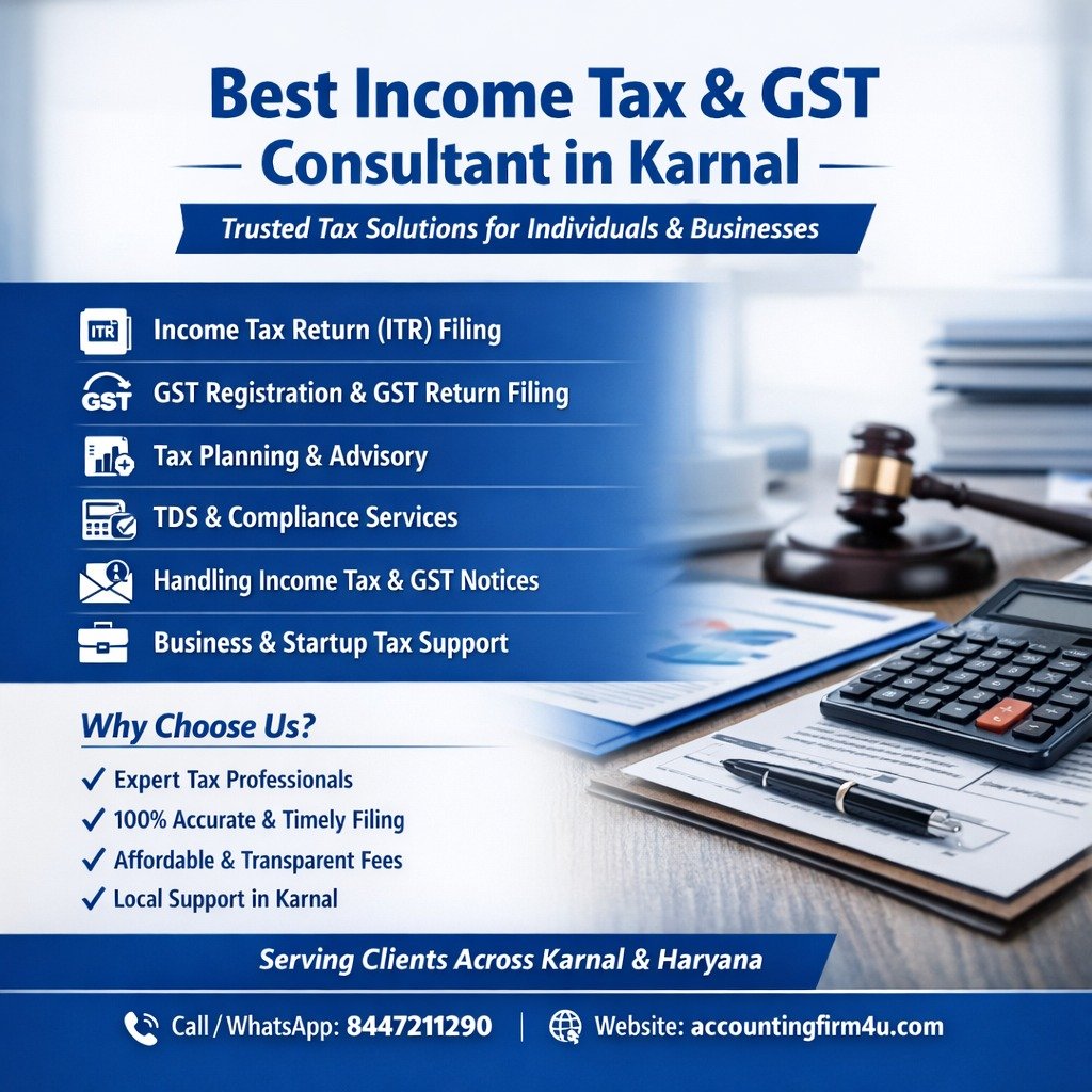 If you are looking for reliable, affordable, and expert income tax and GST services in Karnal, consulting a professional tax advisor is the first step toward stress-free compliance and sustainable growth.